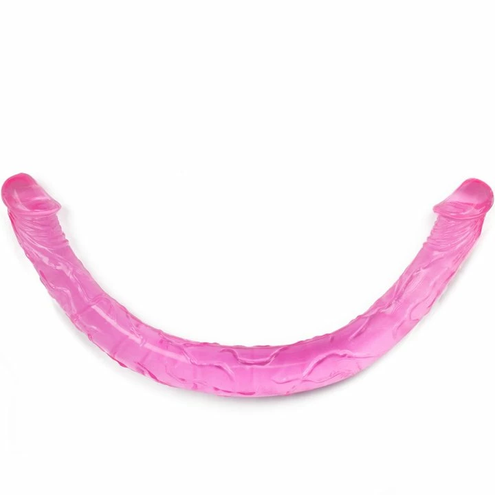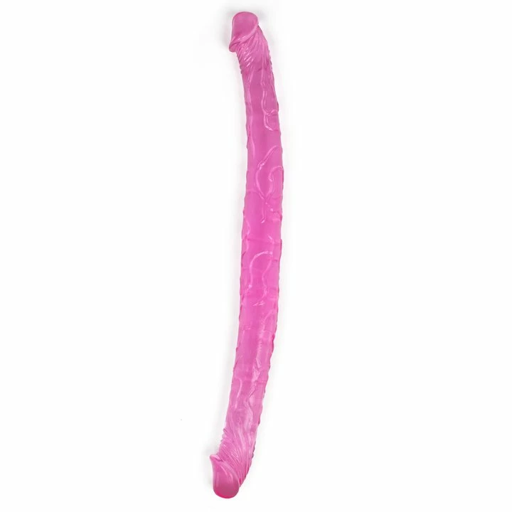 This delightful double ender is ultra flexible in a gorgeous transparent pink sherbet shade, ideal for double penetration during couples or solo play. The realistic shape delivers larger-than-life pleasure with tapered tips on each end, defined heads and a veined texture all along the shaft.