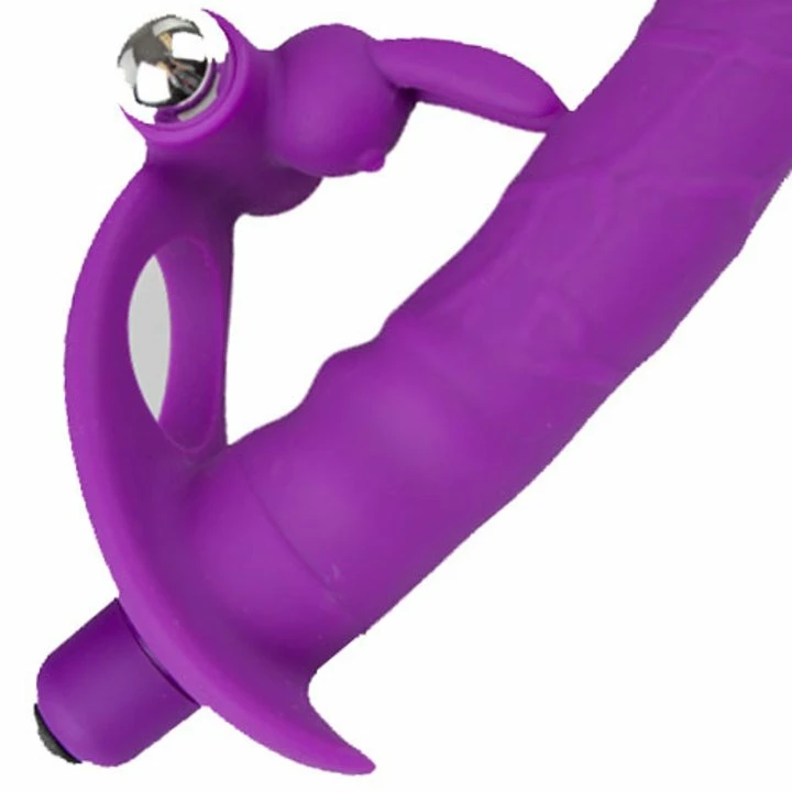 Experience double the pleasure and double the fun when youβre using the Bondara Silicone Dual Penetration 7 Speed Vibrating Strap-On with your partner. The stretchy cock ring puts a clamp on performance letdowns by delivering a tight squeeze to the shaft, while two powerful bullets provide stimulation to both of you. One bullet sits inside the soft and silky bunny ears, pleasuring your partnerβs clitoris. Meanwhile, the other lies within the shaft for complete anal joy.