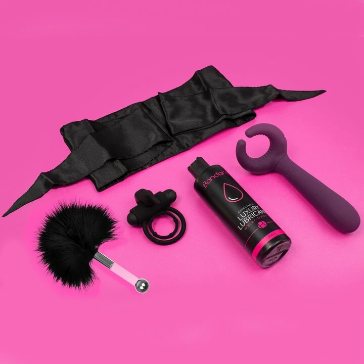 • Includes a vibrating rabbit cock ring, a multiway couples’ vibrator, a 250ml bottle of luxury lubricant, a fluffy feather tickler and a satin blindfold scarf
