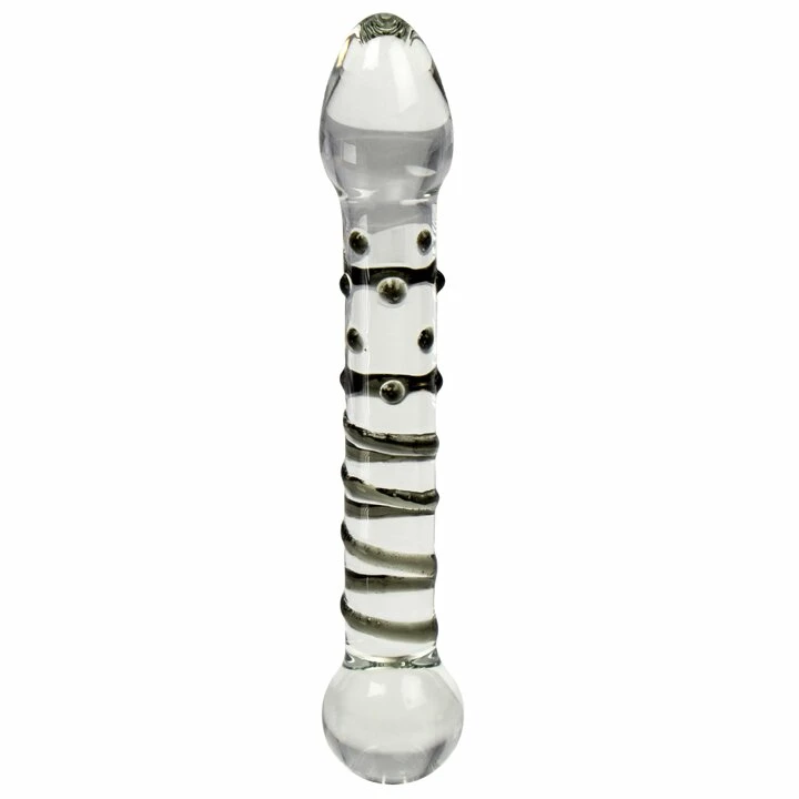 Enjoy the best of both with the Glacier Glass Black Spiral and Dot Dual-Sided Dildo by Bondara. With two sides, find your perfect type of stimulation as you discover the varied sensations of the dots and spiral texture. Small in size but big on pleasure, discreetly tuck your dildo away in your bedside drawer or slip it into your suitcase for a naughty weekend away.Β