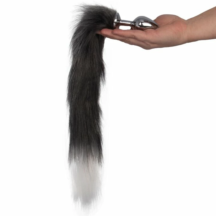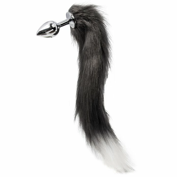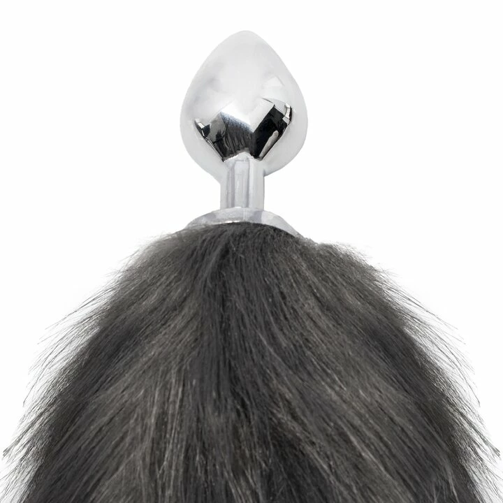 Ruffle feathers in the bedroom with the Vixen Grey Faux Fur Stainless Steel Tail Butt Plug by Kinky Tails. Swishing from your booty in realistic grey faux fur, this silver foxtail exposes your animal magnetism, enticing your playmate with 18-inches of strokable softness.